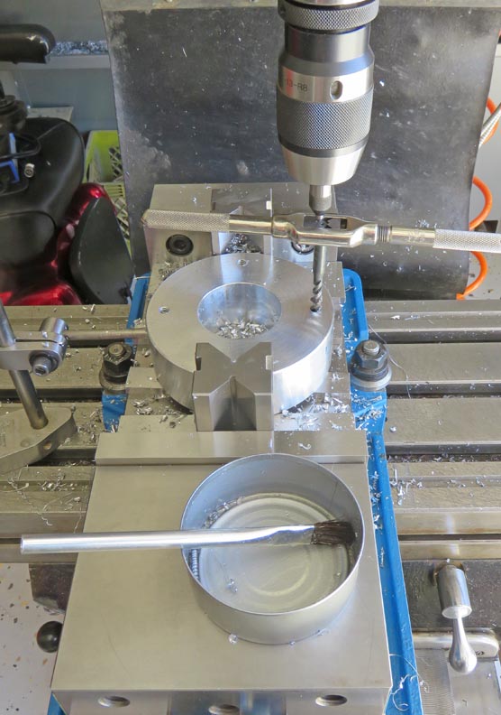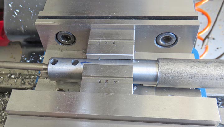 Here I'm putting in the bolt holes for the adapter. Those holes are