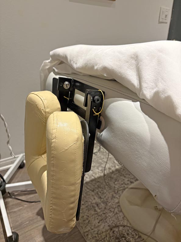 This is the top side and you can see the Velcro pieces that holds the pad on. And you can see the pins in relation to the top is now 2 1/2"