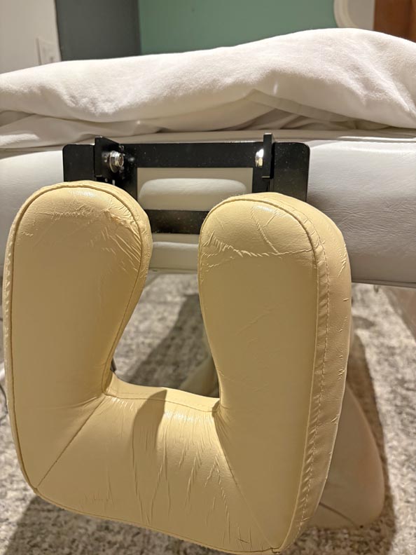 This is the top side and you can see the Velcro pieces that holds the pad on. And you can see the pins in relation to the top is now 2 1/2"