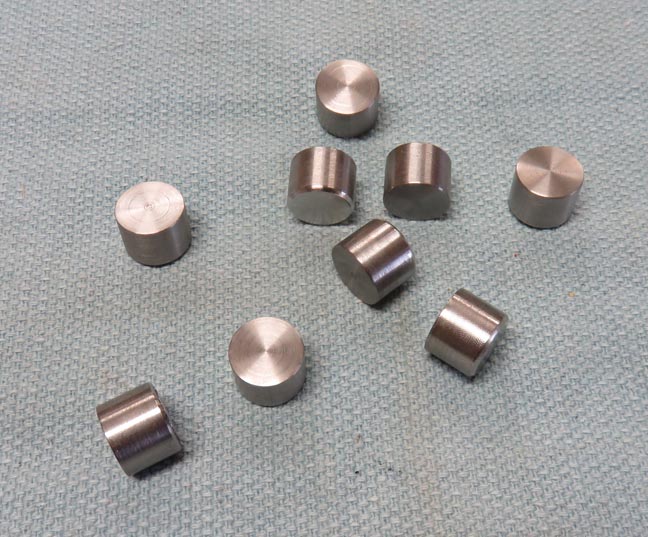 | Next I placed four at a time in my vise to machine them to size.