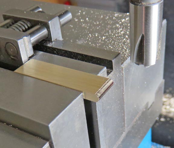 | This end mill has a 1/16" radius and once I machine both sides, this